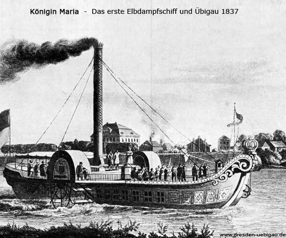 Die Maschinenbauanstalt Übigau übernahm das Schloss 1836. Am 1. Januar 1837 begann Johann Andreas Schubert mit dem Bau der Dampflokomotive Saxonia. Das erste Dampfschiff Königin Maria wurde im gleichen Jahr erbaut.