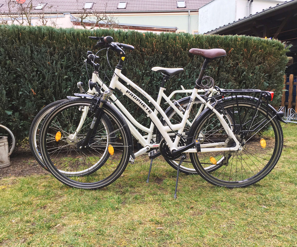Für Ihre Radtouren in die Innenstadt oder die nähere Umgebung stellen wir Ihnen zwei Fahrräder zur Verfügung. Die Benutzung erfolgt auf eigene Verantwortung. Bitte denken Sie an ihre Fahrradhelme.