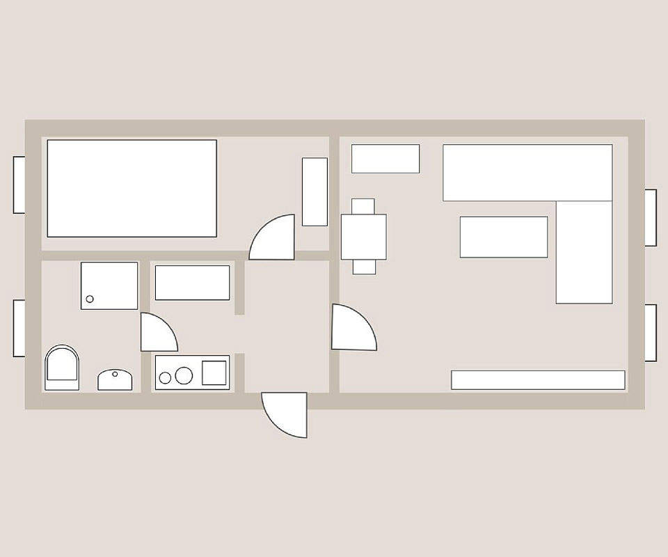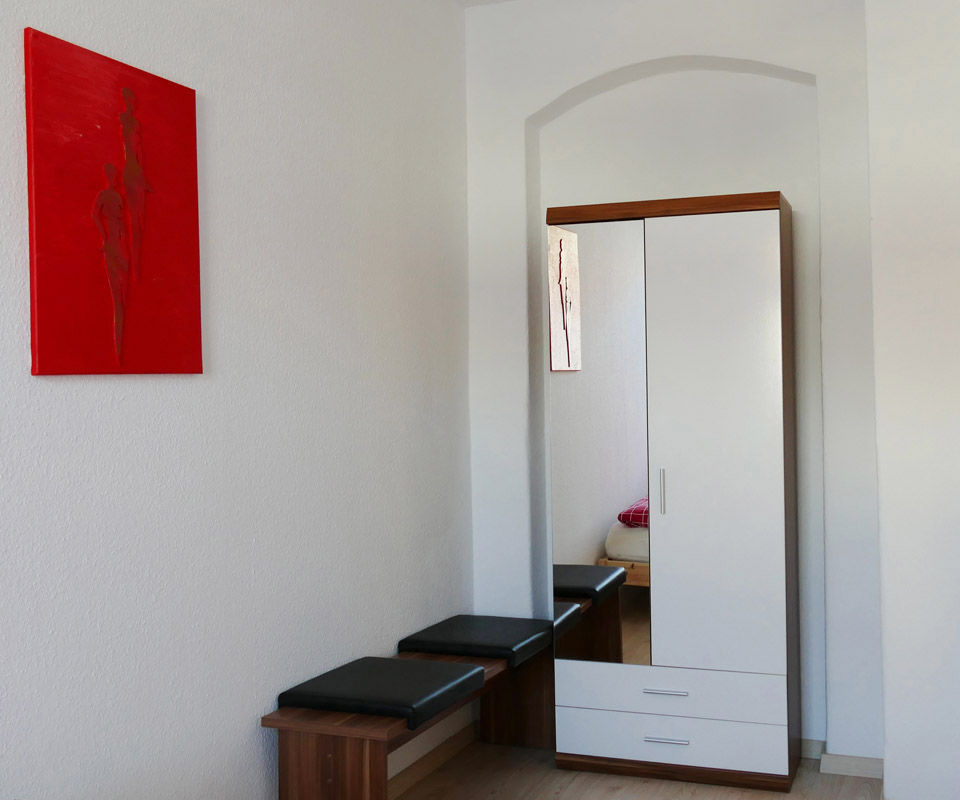 Die Ferienunterkunft befindet sich im ersten Obergeschoss und ist ca. 38 qm groß. Sie verfügt über zwei Zimmer und ist ideal für zwei Personen geeignet. Ihnen steht eine schönes Appartement mit Miniküche inklusive Geschirrspüler, gemütlichem Wohnraum und modernem Bad zur Verfügung. Im Hof befindet sich eine Gartenbank mit Tisch. Dort können Sie nach ihren erlebnisreichen Tagen entspannen.